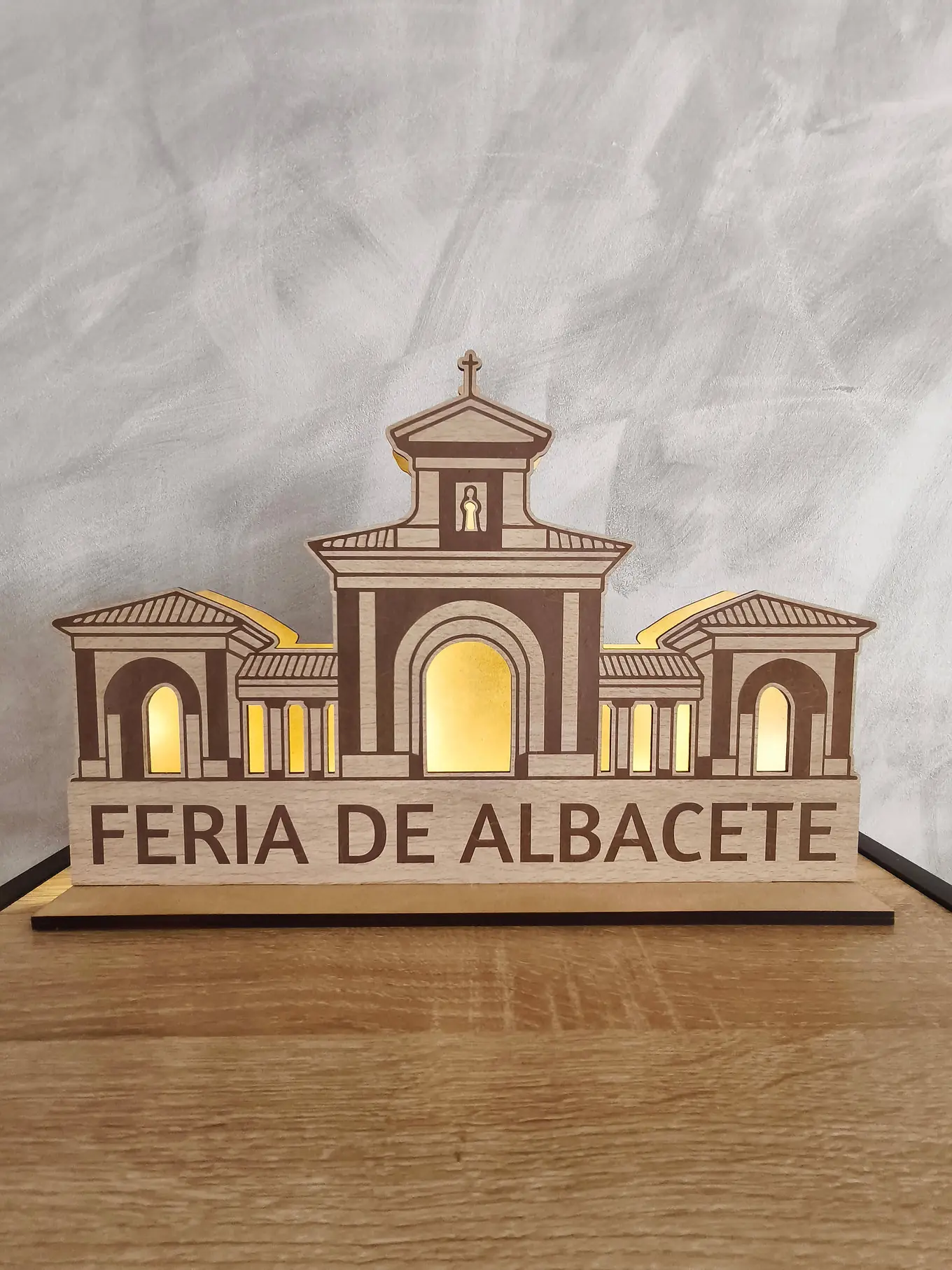 Lleva a tu hogar un pedacito de la tradición más emblemática de Albacete con esta increíble lámpara artesanal inspirada en la Puerta de la Feria. Fabricada en madera de alta calidad, con un acabado cuidado y una iluminación cálida, esta pieza es perfecta para decorar y revivir la magia de la feria durante todo el año.